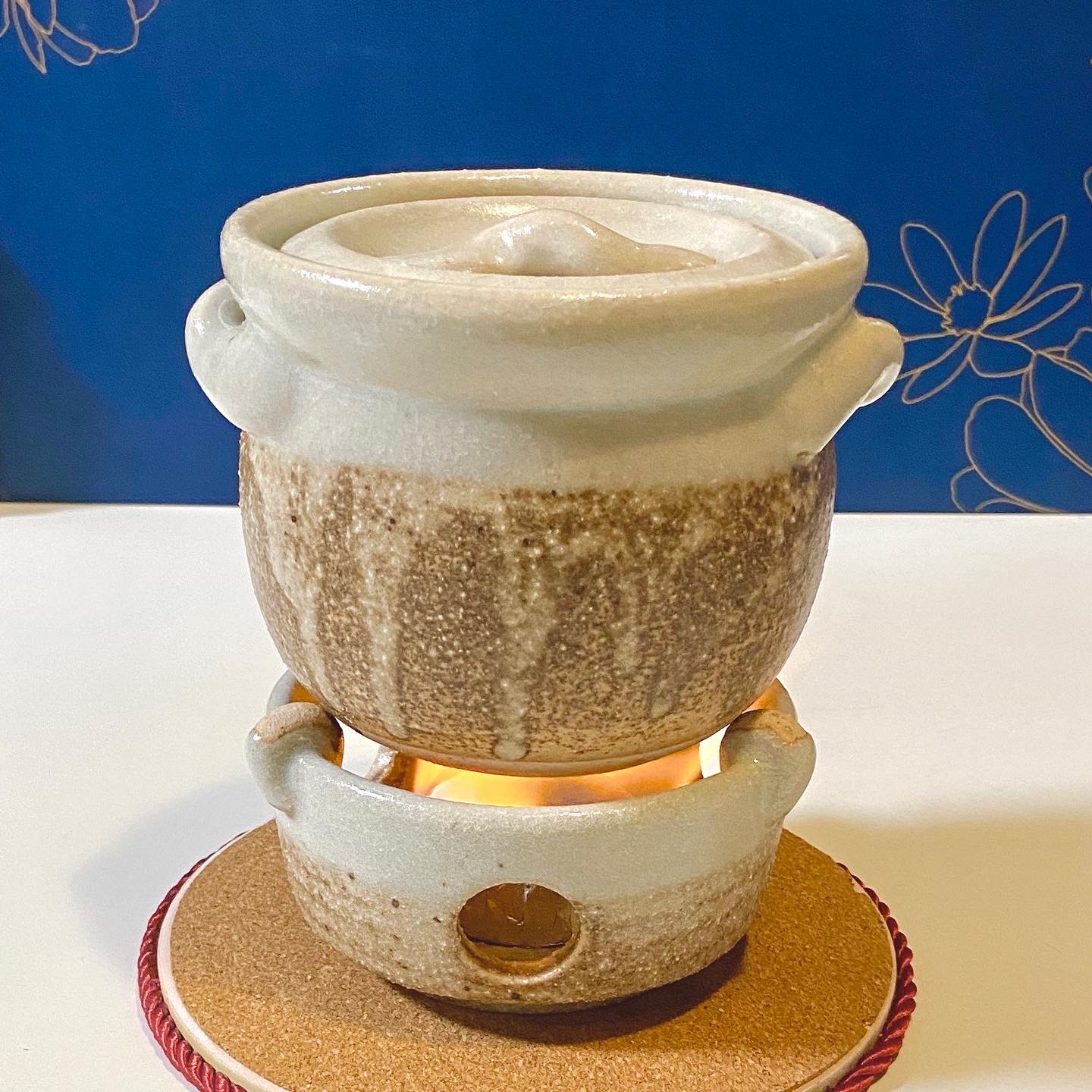 固形燃料(15〜20g)を使って、15分程度で一合ご飯を炊き上げる萬古焼のご飯釜です。