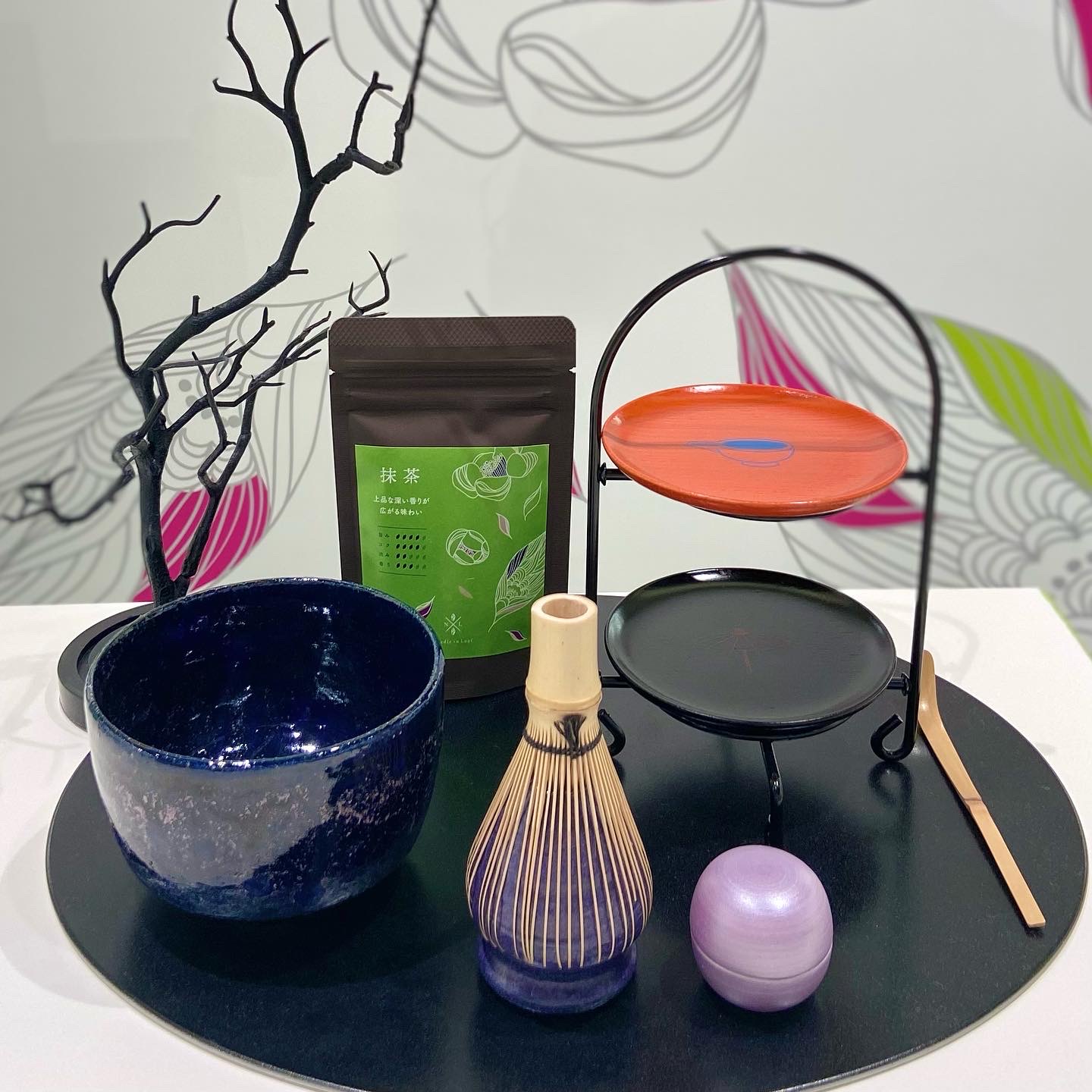 漆塗りの豆皿のスタンドと抹茶を合わせれば、和風アフタヌーンティーの完成です◎