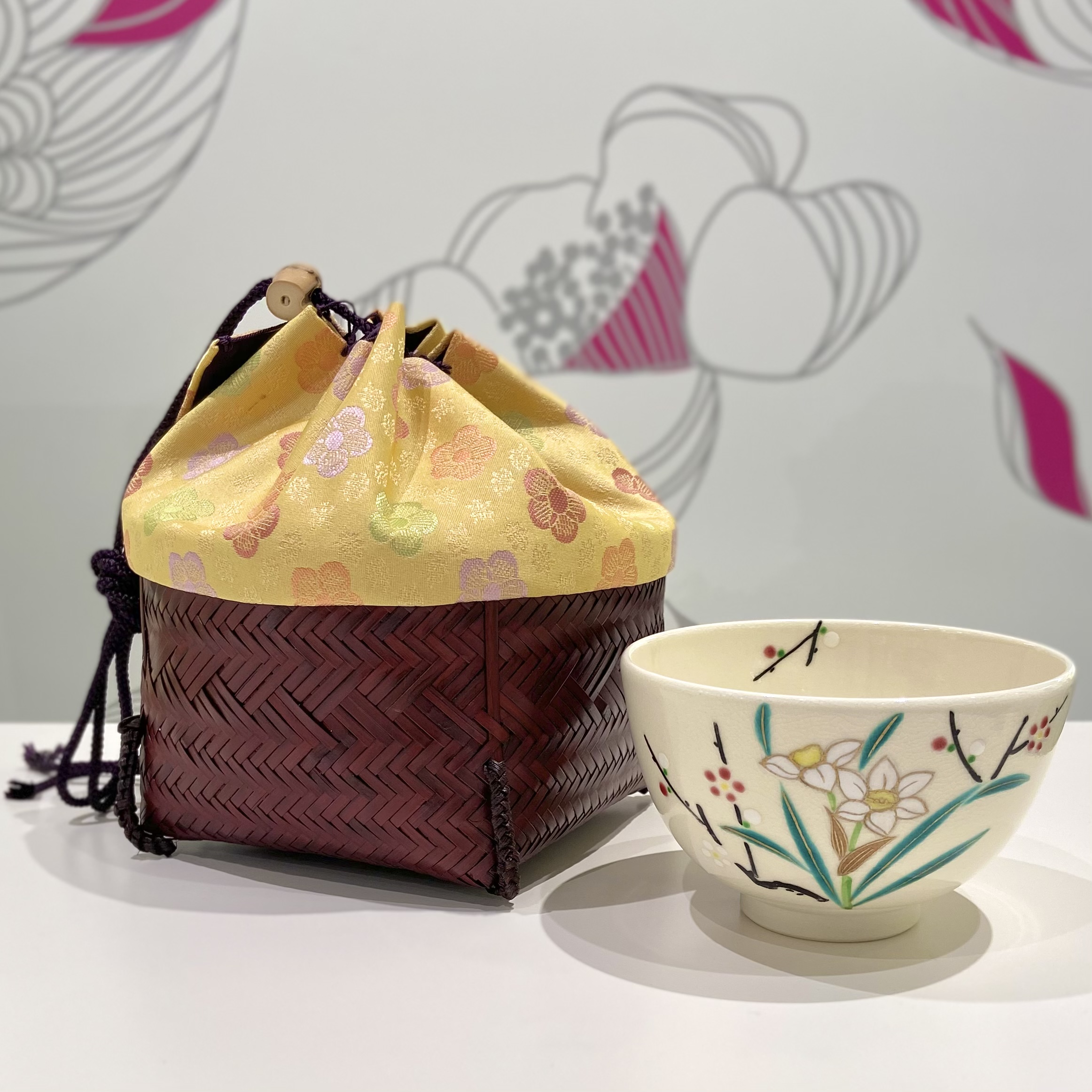 *-小手鞠窯- 京焼抹茶碗 花茶人【水仙と梅】 税込5,500円 ※福寿園オリジナル