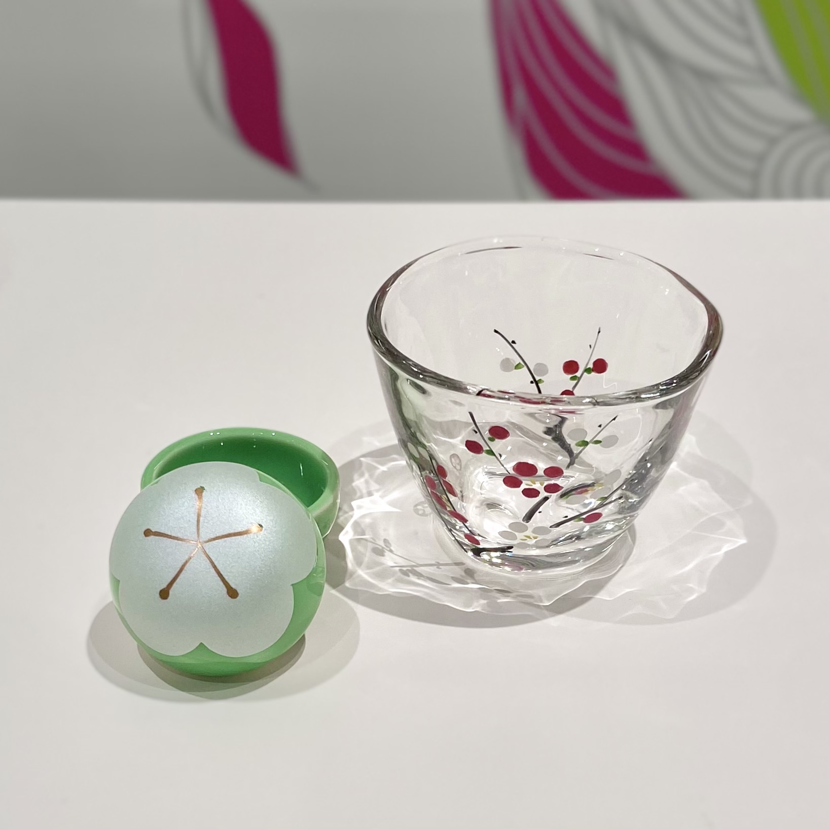 *-小手鞠窯- 京絵付けガラス碗 花茶人【梅】 税込2,750円 ※福寿園オリジナル/耐熱ガラスではございません。