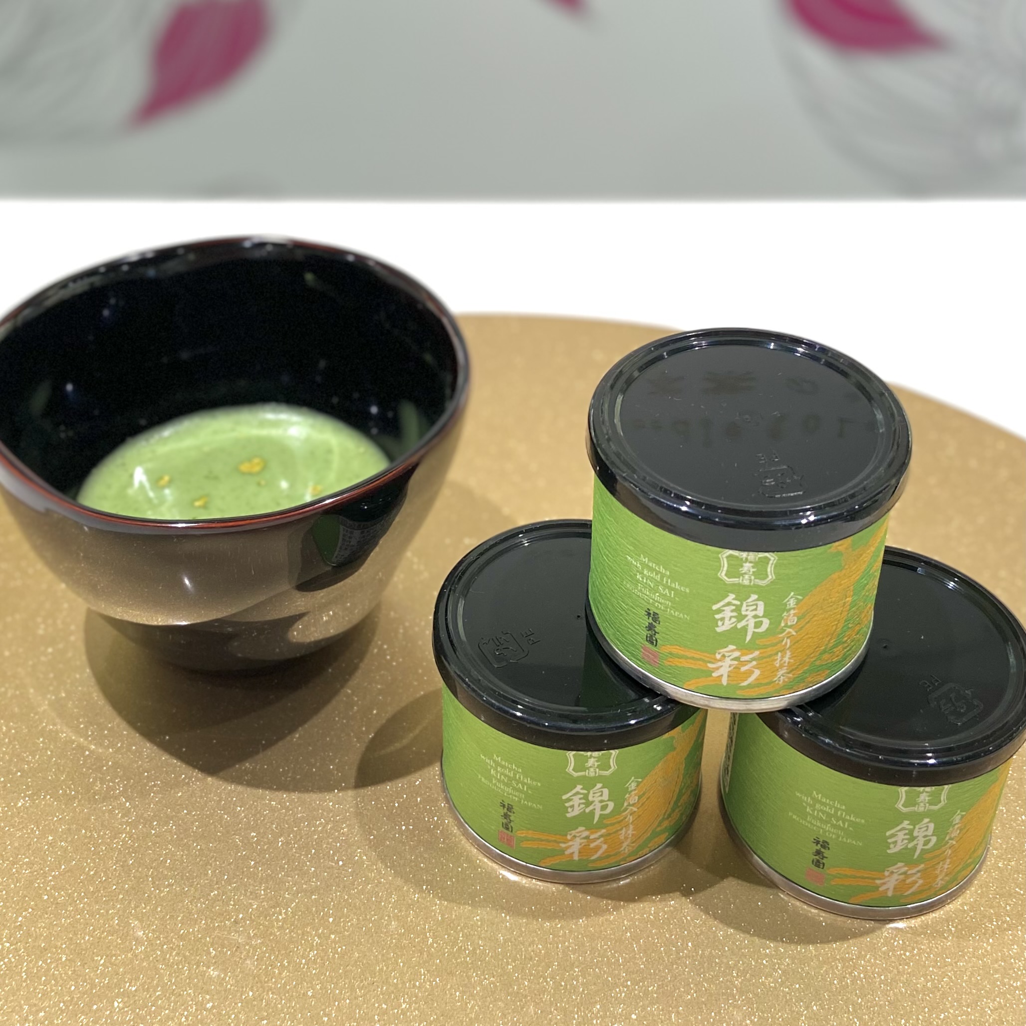 華やかな金箔を、代々伝わる技で丹精込めて挽き上げた宇治抹茶にブレンドしました!