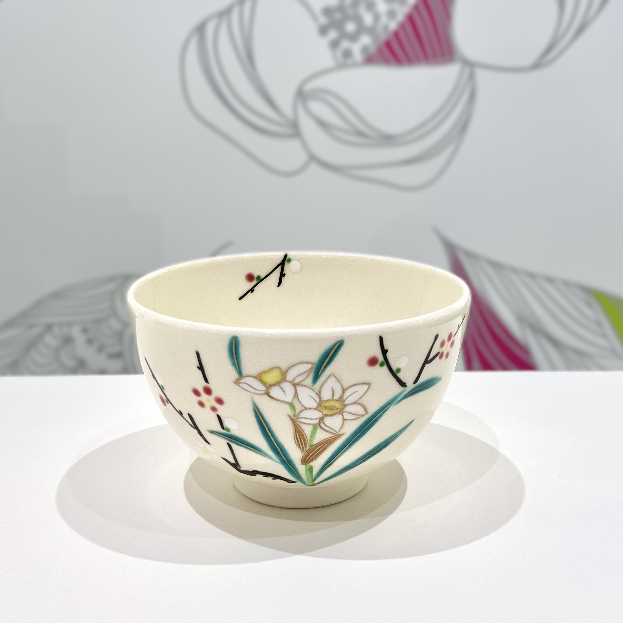 *-小手鞠窯- 京焼抹茶碗 花茶人【水仙と梅】 税込6,600円