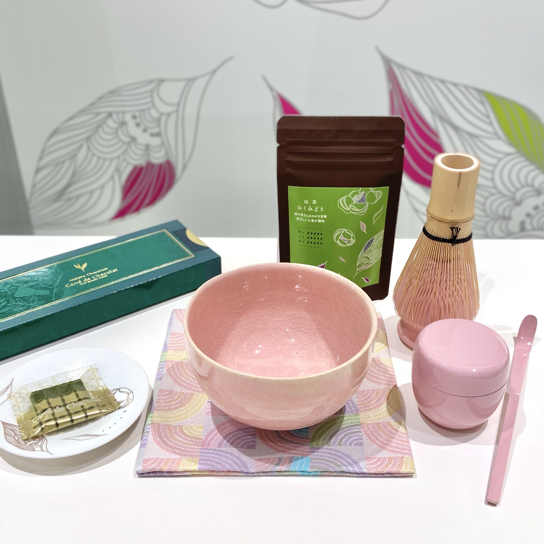 抹茶の緑色がよく映えるピンク色のカジュアルな抹茶碗は、お子様の抹茶デビューにおすすめです!