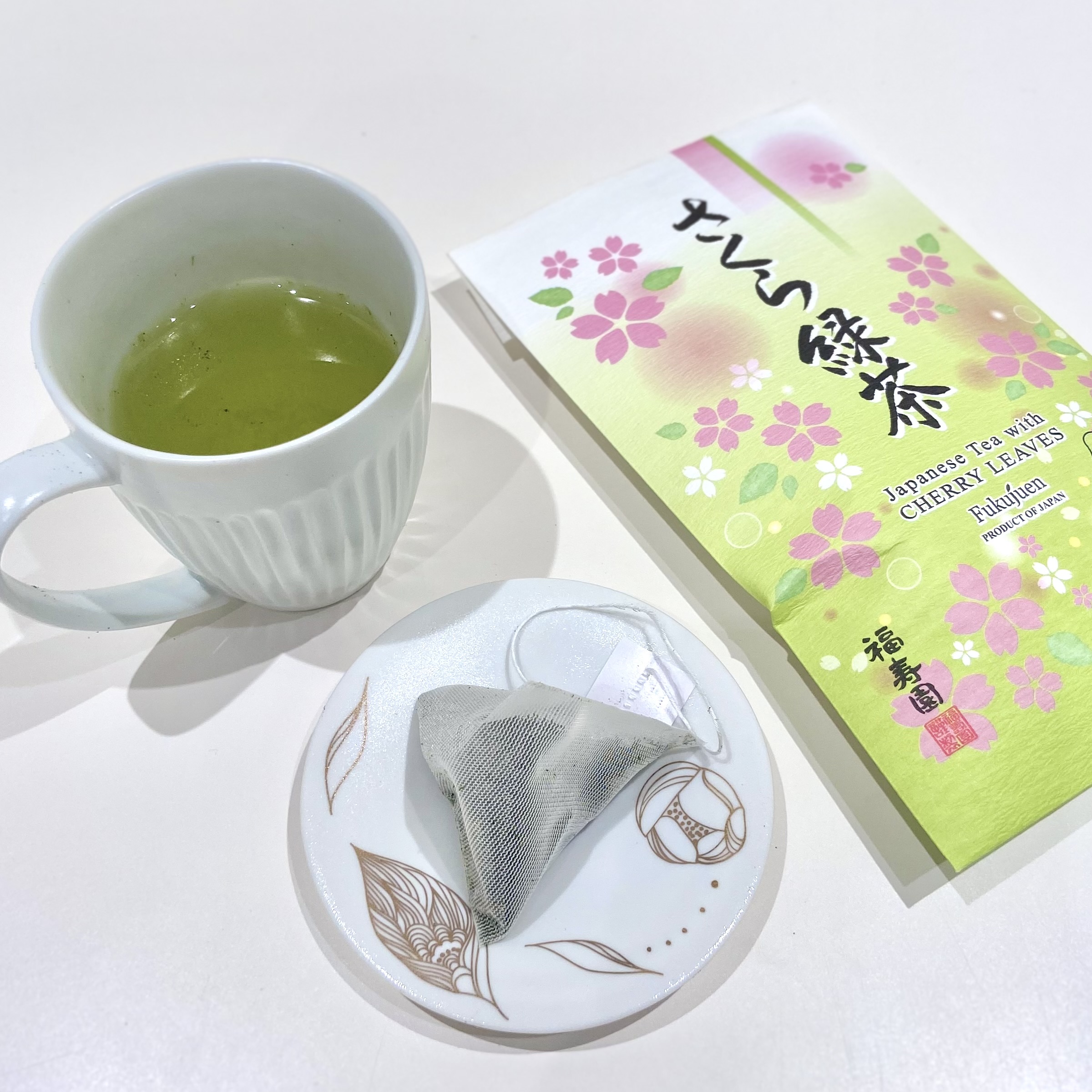 茶園に覆いをして育てることでうまみを持つ味わいに仕上げた宇治かぶせ茶に、塩漬けした国産の桜葉をブレンドしました☺️