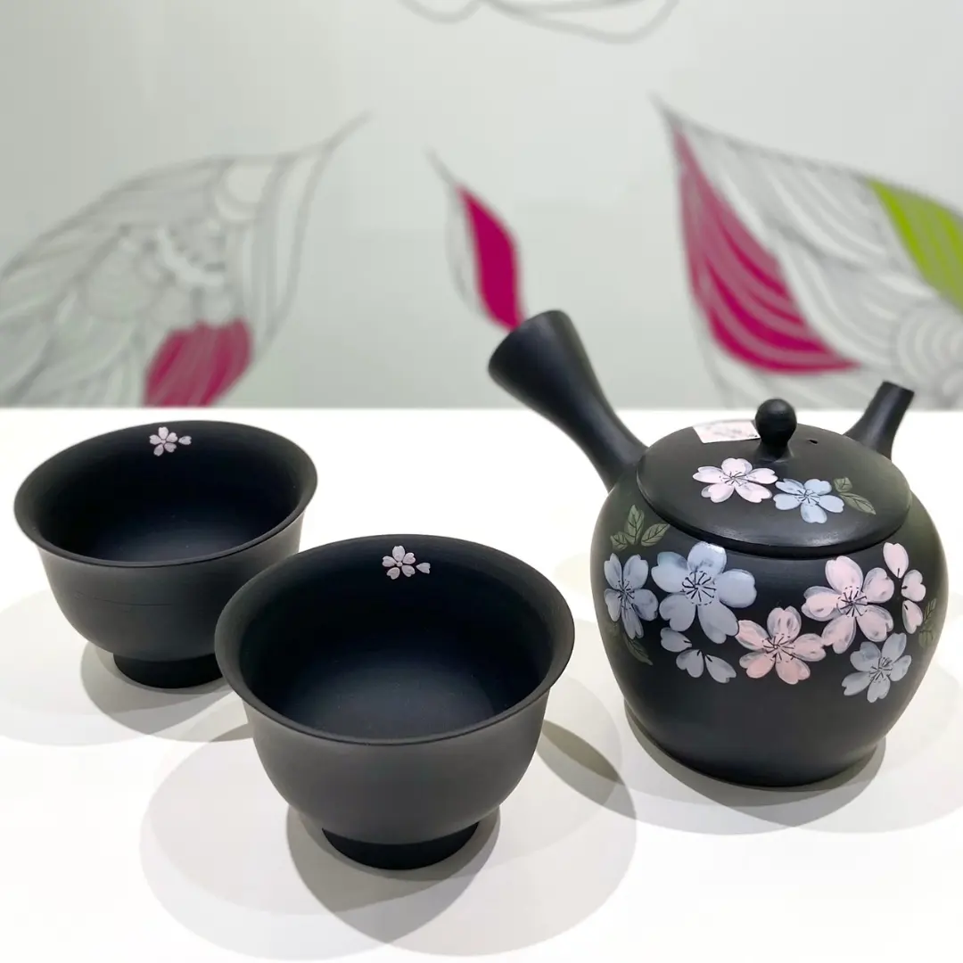 *-玉光- 黒泥桜3点セット(急須:250ml/湯呑:各80ml) 税込16,500円