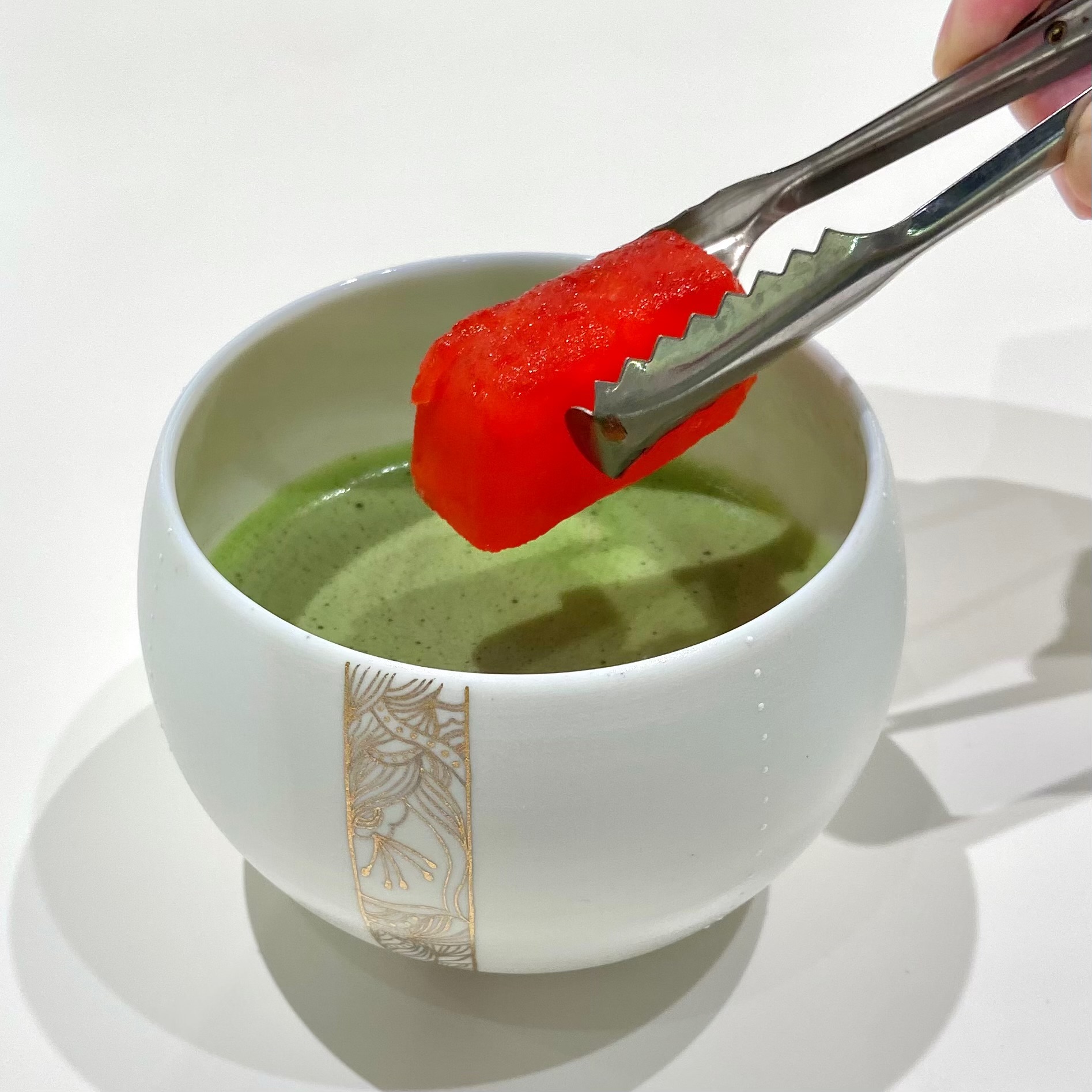 点てた抹茶に氷を入れるため、通常より濃いめの抹茶を点てるのがポイントです!